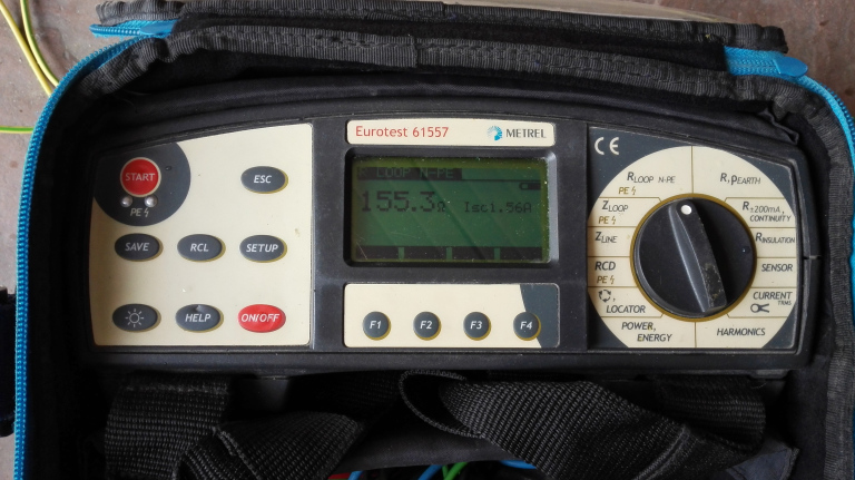 Cabe señalar que la medida de la resistencia que nos proporciona al comprobar la conexión de tierra se refiere a los conductores de protección y neutro y no tiene necesariamente que coincidir con el valor de resistencia a tierra que nos proporciona el telurómetro en el exterior.