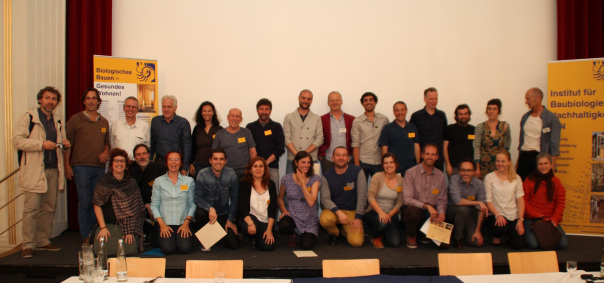 El Congreso del IBN reunió en Rosenheim a más de 200 profesionales de la bioconstrucción, no sólo de Alemania. La representación española ascendió a una veintena de personas (gracias a los servicios de traducción) y hubo representantes de los lugares más dispares; Chequia, Japón, Australia, Noruega, Ucrania… Allá tuvimos ocasión de reencontrarnos con nuestros profesores, Jürgen Fell y Bernd Kinze y de conocer en persona a algunos autores del contenido del máster como Winfried Schneider o Wolfgang Maess. El evento atrajo también a numerosos expositores, con libros, sistemas de iluminación, aparatos de medición, productos de bioconstrucción y apantallamiento…