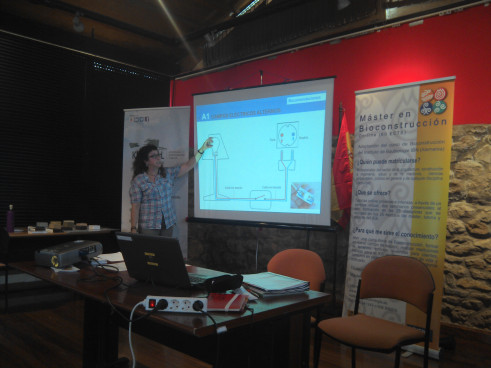 – Marta Epelde, en representación de Kursaal Green, realizó una presentación de diversos materiales utilizados en Bioconstrucción e introdujo el concepto de la relación salud-hábitat con la presentación de la Norma Técnica de Medición en Bioconstrucción SBM-2015. Además, abordó el tema de las humedades y microbiología en la edificación, exponiendo los riesgos para la salud y ejemplos prácticos.